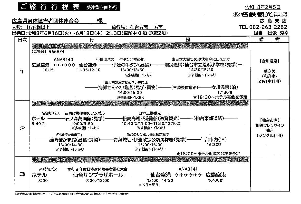 ・期 日 令和8年6月16日(火)~6月18日(木)2泊3日